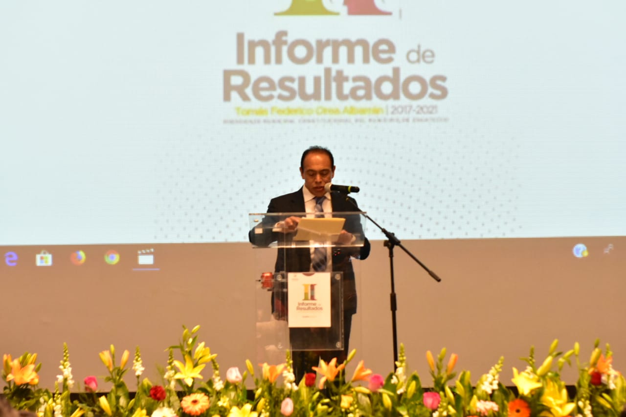 La mañana de este jueves 20 de Diciembre, en las bellas instalaciones del Auditorio Nicanor Serrano y bajo el lema En Zacatelco ¡Lo estamos logrando!, el Presidente Municipal de Zacatelco Tomás Federico Orea Albarrán rindió su segundo informe de resultados como parte del cierre de actividades de su administración en este 2018.